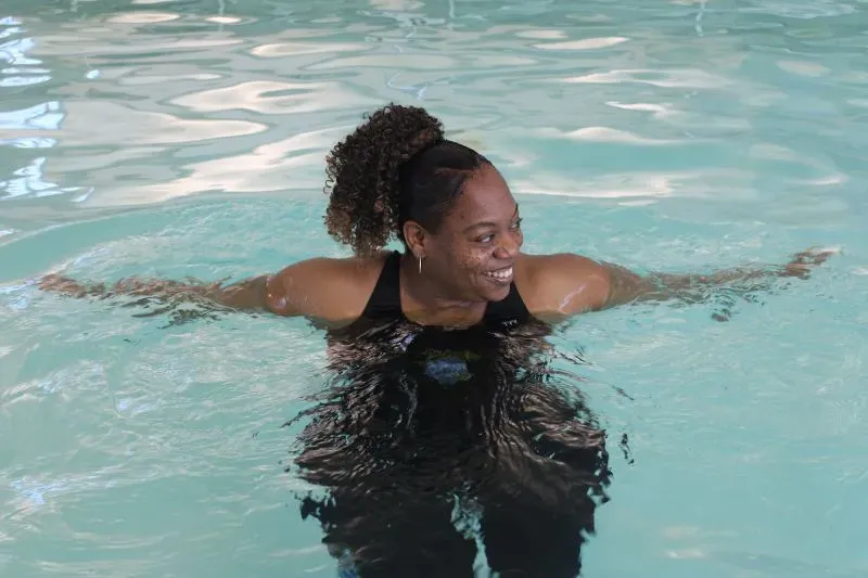 والآن، في سن 42 عامًا، تتعلم ماكدونالد السباحة مرة أخرى.