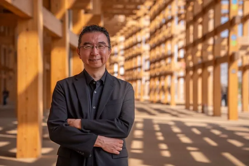 كان فوجيموتو أحد أشهر المهندسين المعماريين الأحياء في اليابان، وكان خياراً واضحاً لمنظمي إكسبو. فبالإضافة إلى عمله على نطاق واسع في اليابان، أصبح هذا المعماري البالغ من العمر 53 عاماً مشهوراً عالمياً منذ أن طُلب منه تصميم جناح مؤقت في معرض سربنتين في لندن، وهو أحد أرقى التكليفات المعمارية في عام 2013.